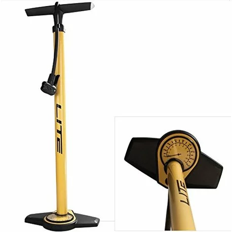•Inflador de pie lite fabricado en aluminio con base y mango de plástico.