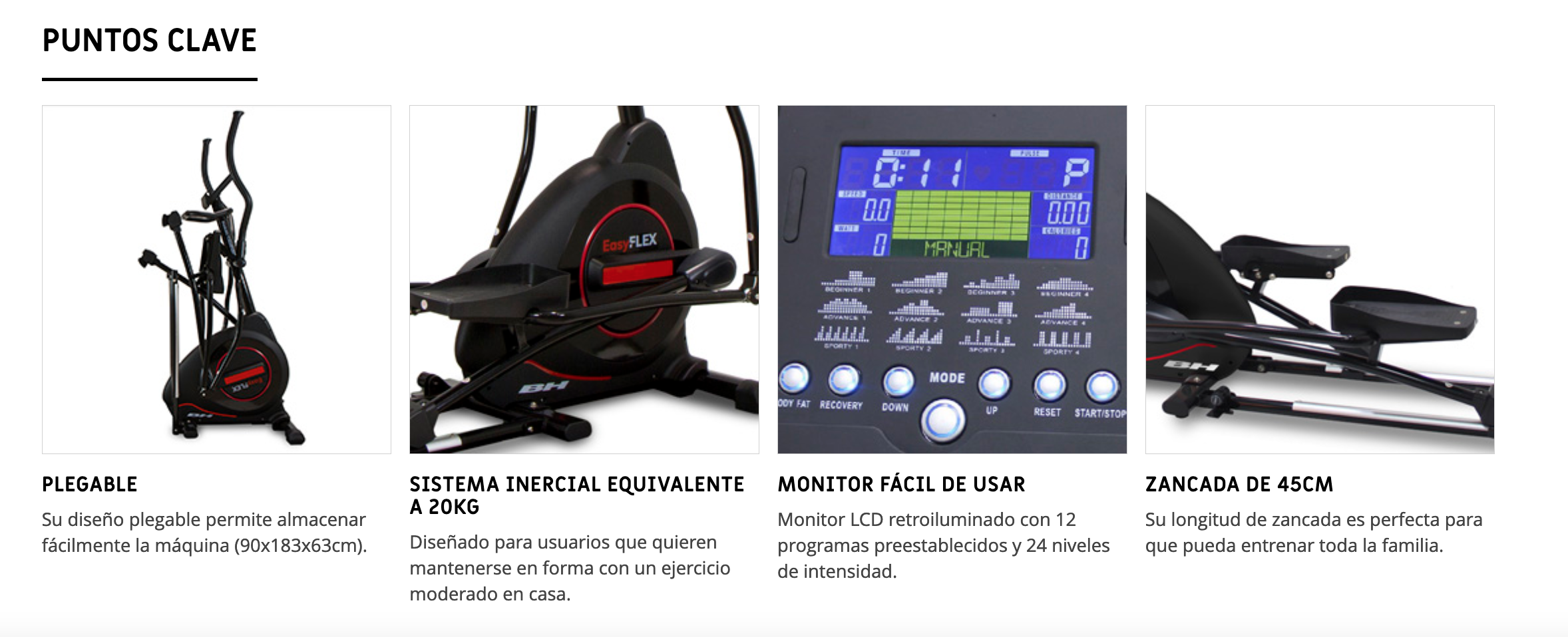 Longitud de zancada: La elíptica cuenta con una longitud de zancada de 45 cm.