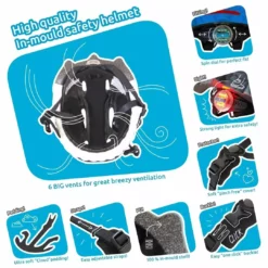 Se ajustan a la perfecciĂłn a la cabeza de cualquier niño, ya que con la rueda que hay en la parte posterior se regula al perĂmetro craneal sin problema. En esta misma rueda de ajuste hay unas luces led con 3 posiciones (fija, intermitente y variable) que garantiza la visibilidad del niño, mejorando la seguridad.